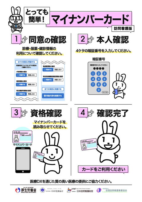 正確な情報を取得・活用し、質の高い看護サービスの提供につなげるため、利用者様にはマイナ保険証によるオンライン資格確認の利用にご協力をお願いします。